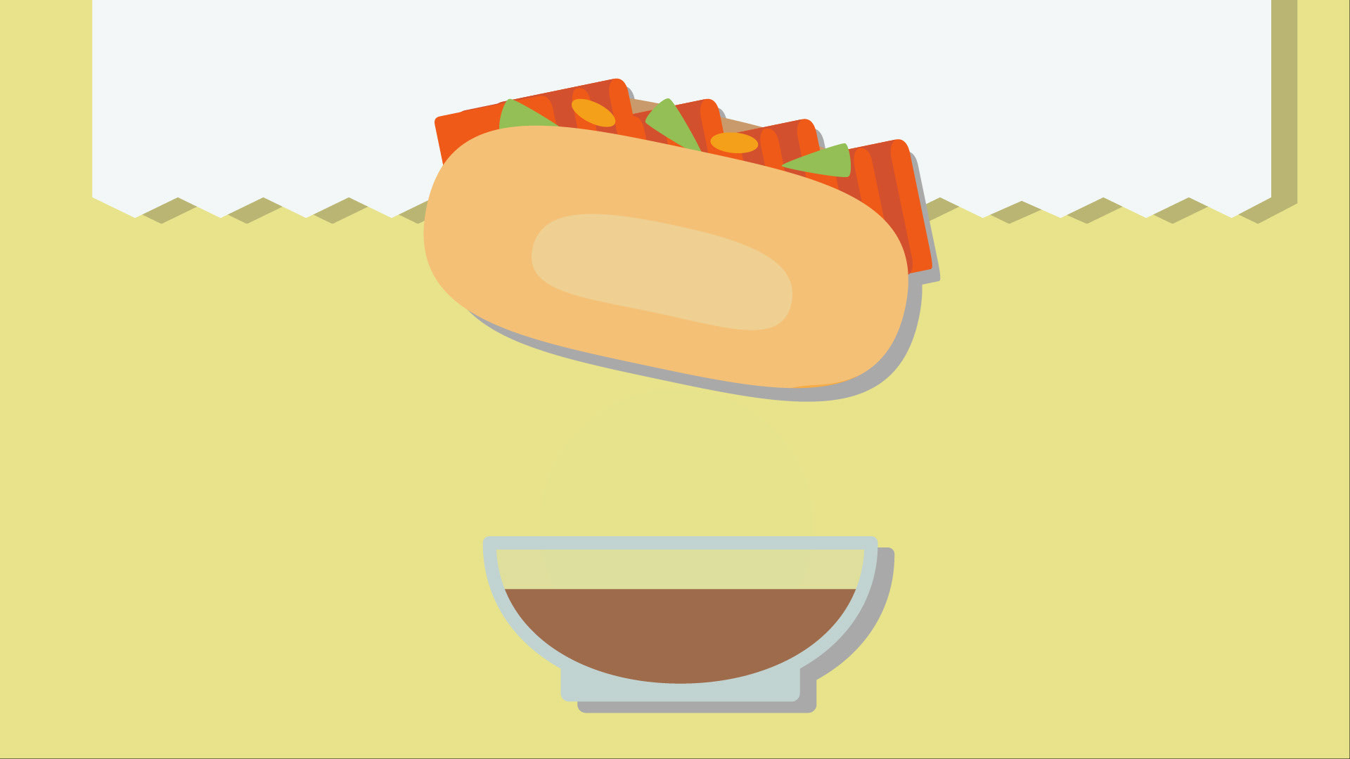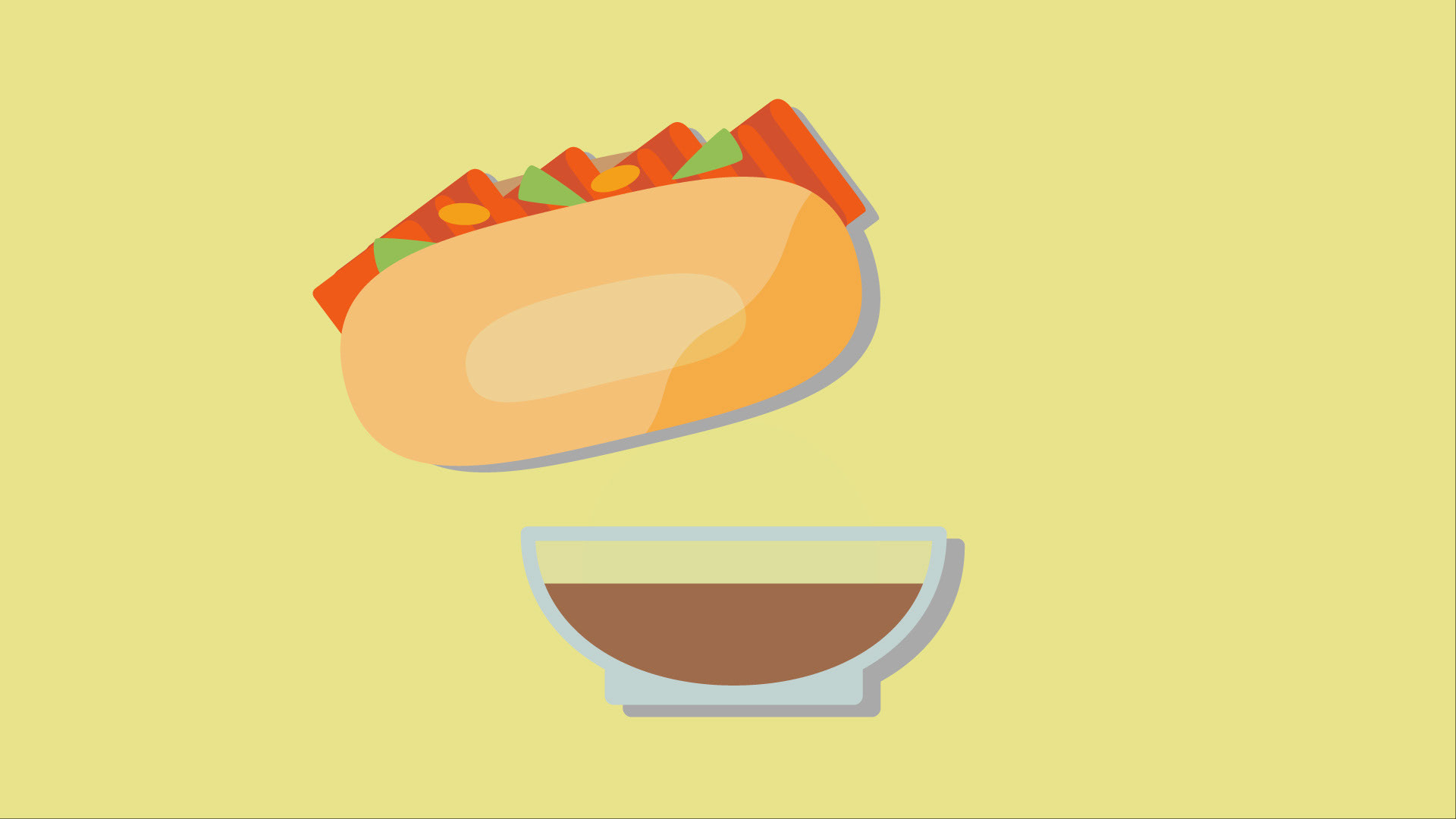 An instructive illustration on how to make the perfect Italian beef sandwich.